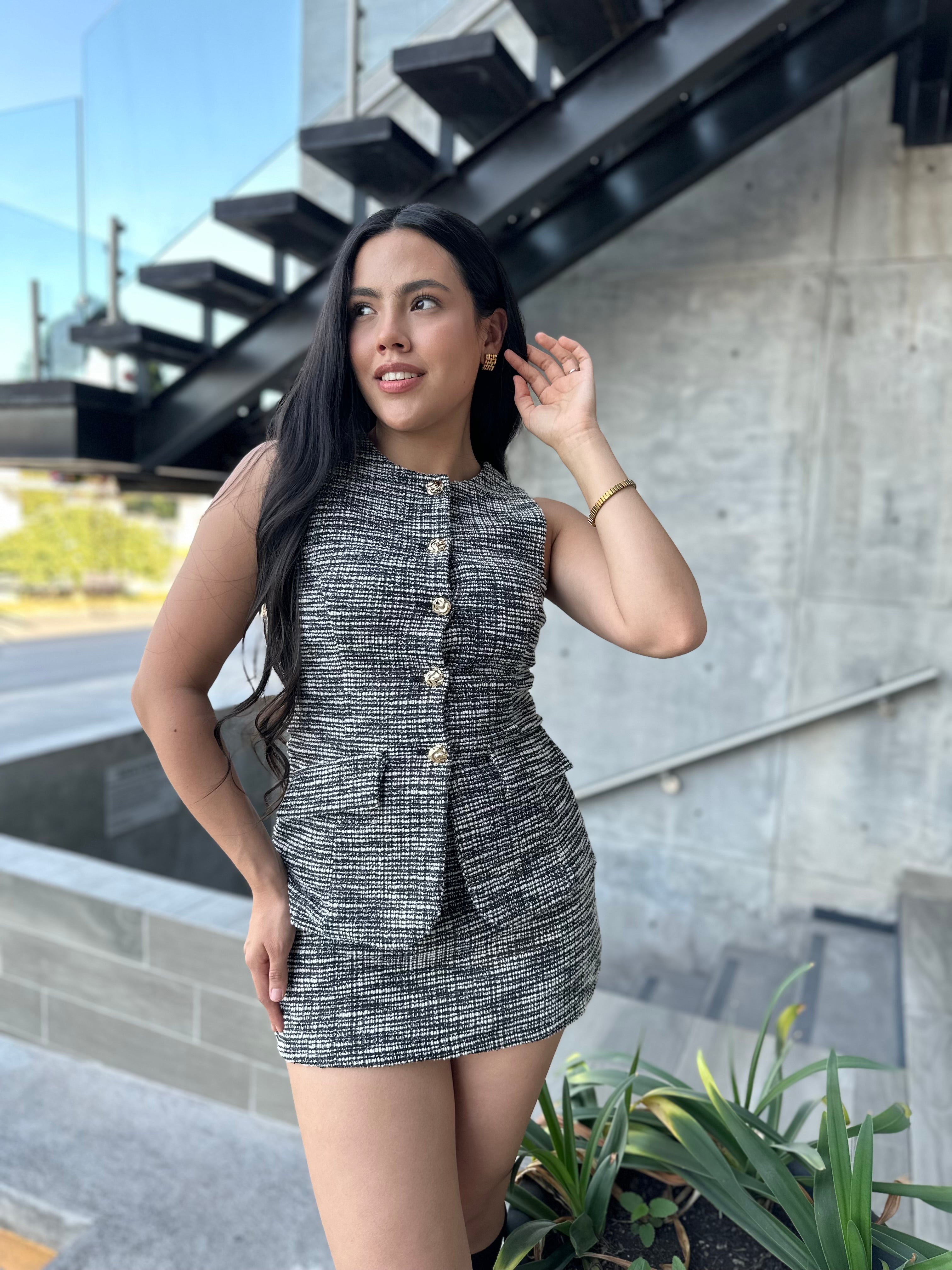 SET FALDA CHALECO RAYAS